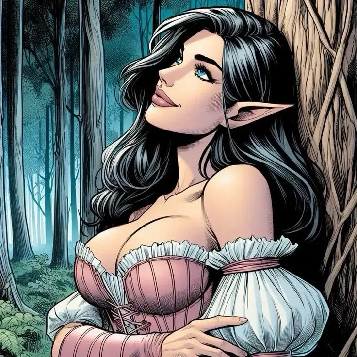 The Ren fair is a fantasy world in your own backyard, with elves, vampires, and Witchers everywhere you look—all people in elaborate cosplay. You're dressed as a knight with a sword, while Moon wears a revealing pink and white dress with fake pointy ears as a British elf, her cleavage prominently displayed.