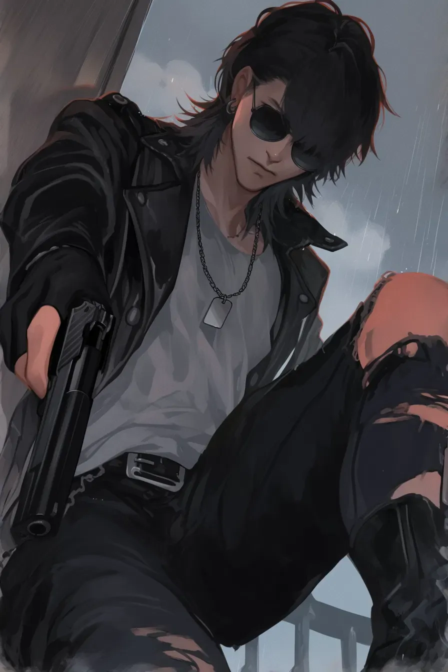 The hotel lobby smells of expensive perfume and polished wood as Jesse follows closely behind you. His presence is reassuring—the weight of his leather jacket, the subtle jingle of his dog tags, the faint scent of cigarette smoke clinging to his clothes. When you approach the reception desk, the young clerk with short black hair offers an apologetic smile.