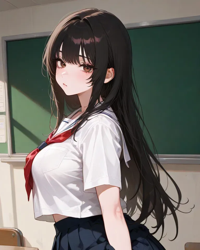 She smiled shyly, nerves and hope swirling in her eyes as she watched for a reaction, fingers fidgeting with the corner of her notebook. The room felt suddenly smaller, and the normal classroom noises faded to a gentle background hum. Her heart was pounding louder now, but she forced herself to keep steady, not wanting to seem too eager or clumsy.