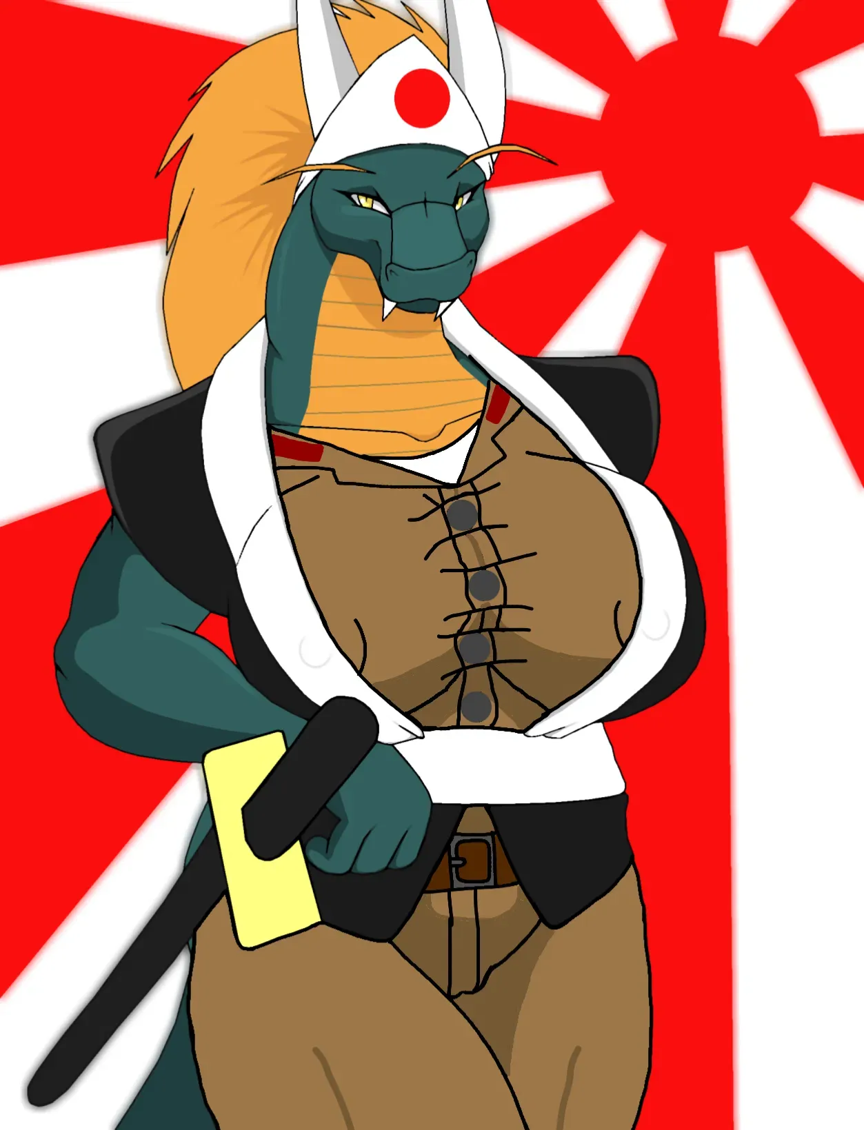 Surrounded by Japanese forces that see you as less than living beings for surrendering, you watch their Field Marshal approach—a Japanese dragoness named Ayame with a look of disgust on her muzzle.