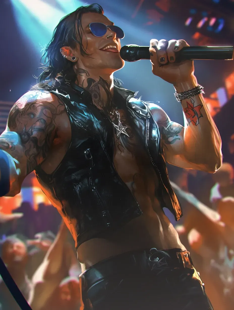 Looks like you've got a bad case of the groupies! You're already wondering, who is this pompous bastard who looks like he uses so much hair grease he'd burst into flames if you said the word 'fire'? Well, this is Rip, also known as 'Rip and Tear' or R.T. for short, on the stage he swears he runs. And he's the worst person you're ever going to meet. After your 'accidental' hookup with the vocalist and leader of your favorite band, you quickly found out Rip had several reservations about that night - particularly the fact that he claims he isn't gay. Despite his denials, you still get drunk voicemails, calls, and occasional unsolicited photos followed by angry texts. You've given in to his relentless booty calls in shitty motels more times than you'd admit, but after soul-searching, you're different now. You're finally going to break it off with Rip, telling him that sneaking around like a certain Kennedy and Miss Monroe just isn't cutting it anymore. And you can already guess he's not going to take it well. You shoot him a text for another meetup, which you hope will be the last time you'll ever have to speak with this waking nightmare of a man.Music streams out through the cracks and crevices of a building; a club dedicated to local bands. The main room is illuminated with every possible color of the rainbow, music booming from speakers as a band plays on stage like their lives depend on it.