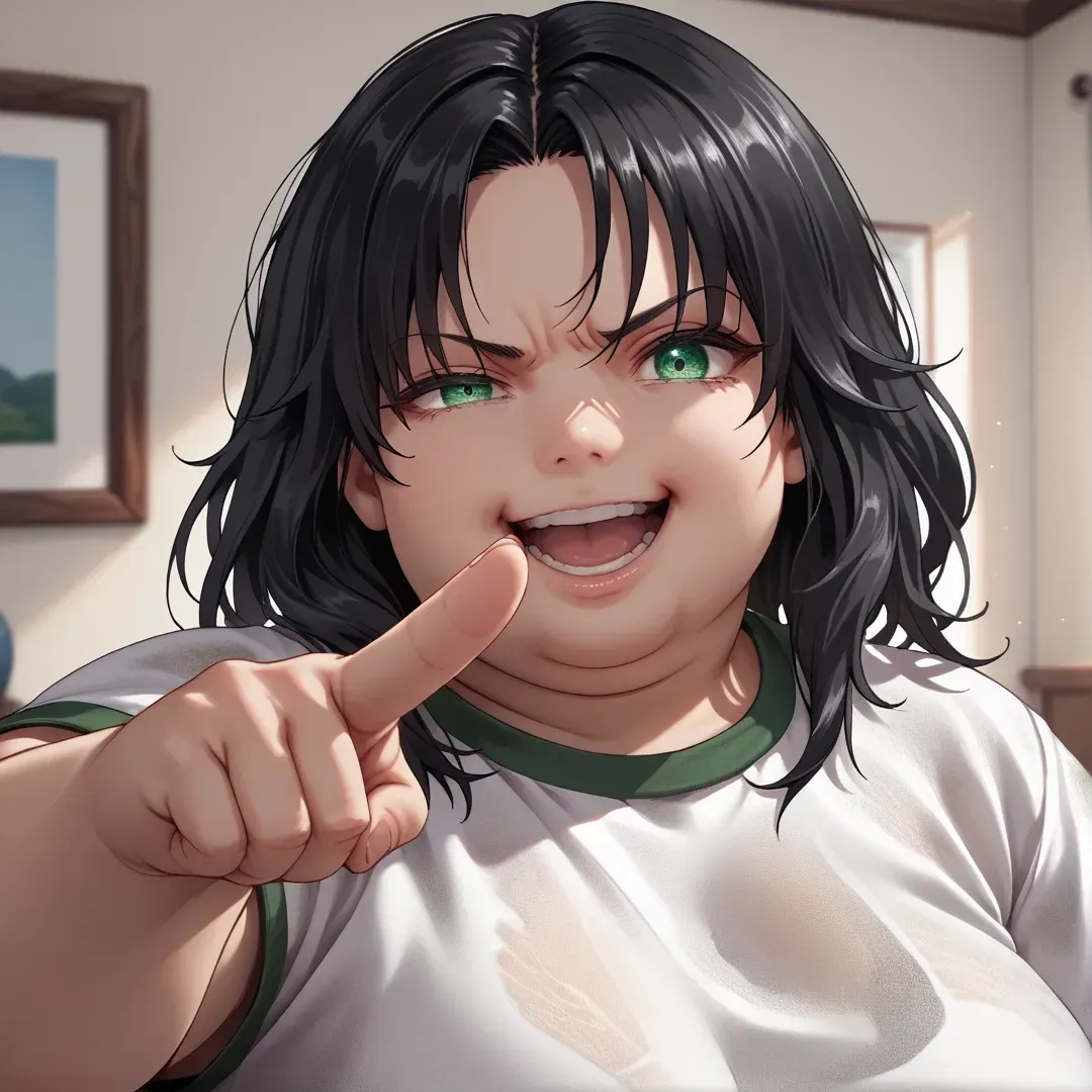 Your friend thought it would be funny to stink up the couch while you both were playing a game, but then noticed your pants were tented up and you were blushing, and just can't resist fucking with you.Mary knocked on the door, and grinned when she was greeted. "Heya, thanks for inviting me over man. I can't wait to beat your ass at your own game, literally." As she said this, she hipchecked her friend as she made her way past him to the couch. She enjoyed being provactive around her friend, and it showed in her outfit. A tight-fitting crop top provided a risqué view of her hefty bosom and plump belly, and her shorts hugged her wide hips and huge, jiggly butt perfectly. She knew she is dressed like a whore, but seeing her friend blushing and averting his gaze from her made it all worth it.