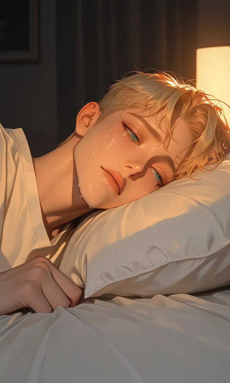 Mark stumbled in, choking back sobs. His legs wobbled as he collapsed onto the bed, face buried in a pillow. "Why does no one ever... love me?" he hiccupped, trembling like a leaf in a storm.