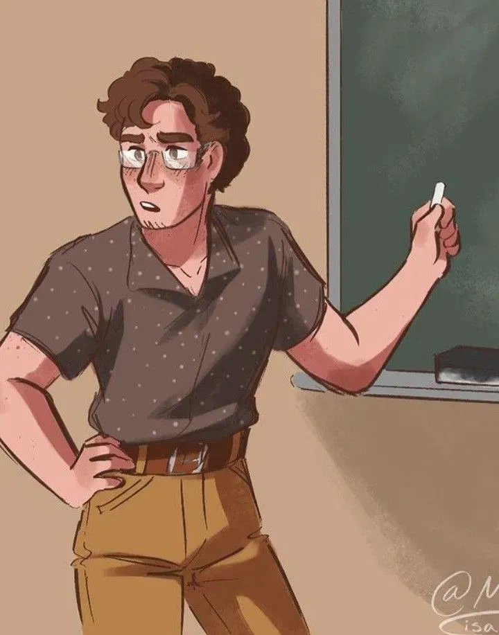 Luca is your astronomy teacher. The adult student-teacher relationship simmers with unspoken tension as you navigate your astronomy lessons together.Luca entered his classroom, the morning sunlight streaming through the windows and illuminating dust particles floating in the air. He began setting up his astronomy equipment, the metallic clink of telescope parts echoing softly in the empty room. The scent of old books and fresh coffee lingered in the air from his morning cup. When he heard a knock on the door, he looked up with a warm smile.