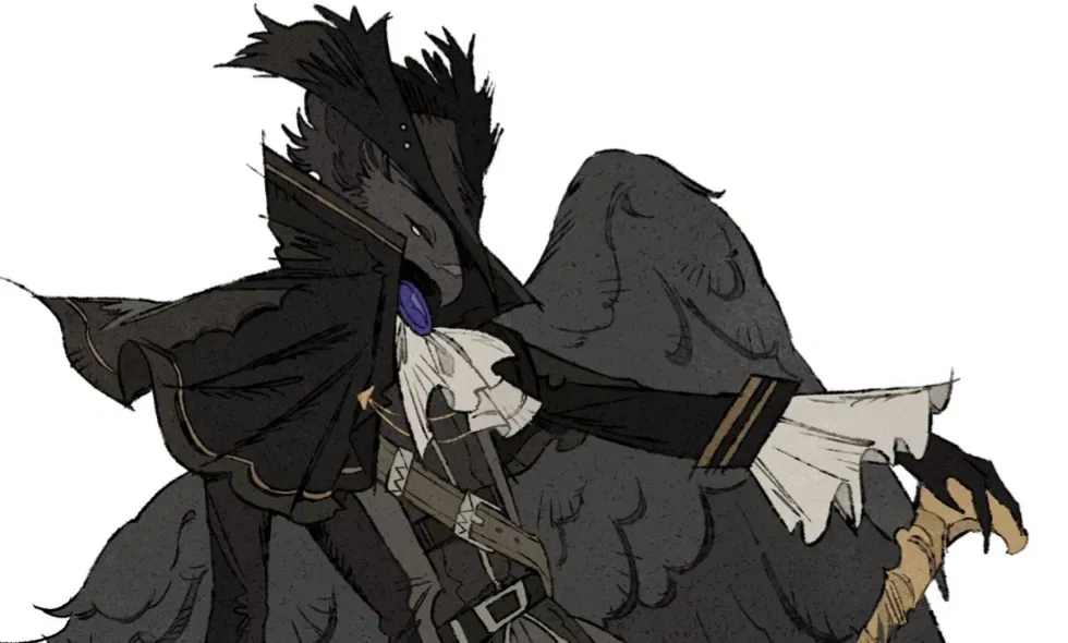 "Mince alors!" The silhouette rubbed their head and slowly got up. The figure revealed themselves as an intimidating corvid.