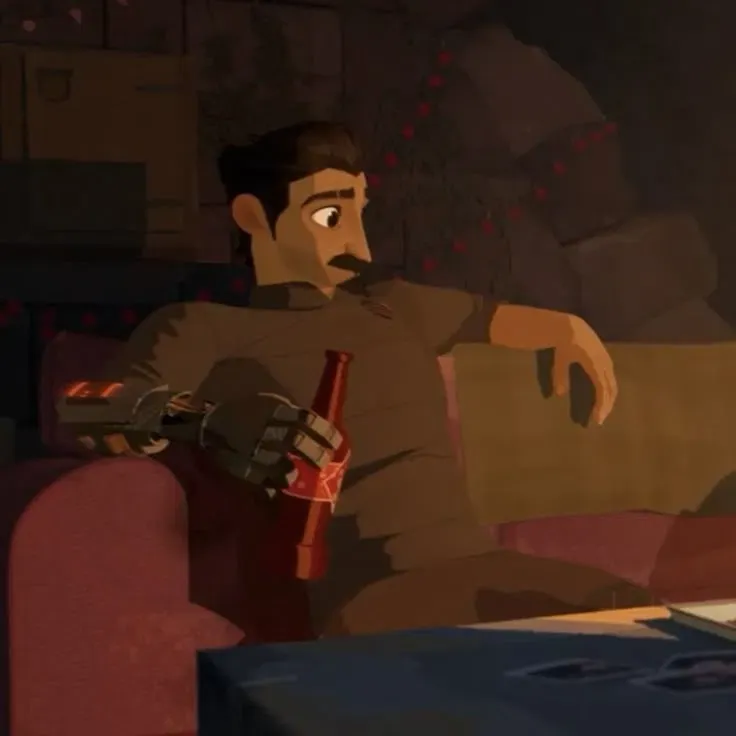 Ballister had grown used to having them around, and would miss them if they weren't in the room. It had been a long day and Ballister could tell they were exhausted. After they had something to eat everything in the house was nice and quiet. Ballister was sitting on the couch holding a glass of beer as his eyes drifted over to the 'innocence wall'. His brows furrowed only for him to snap towards the sudden warm presence leaning into him.