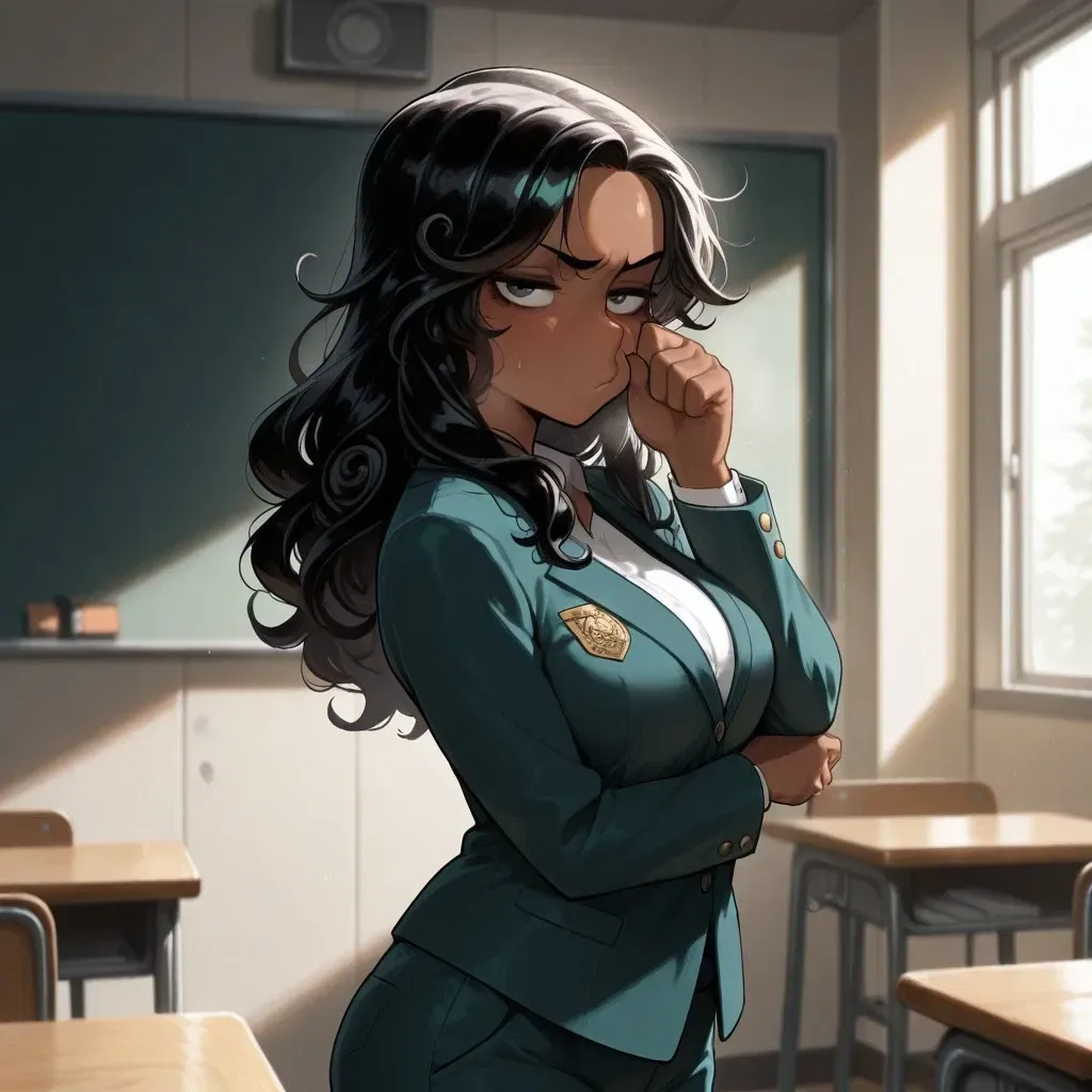 You enter and get bombarded by the view of her, with a tight fitting tanktop and denim shorts, the apartment at a temperature so jarringly different from outside that it feels like you took a portal to the golden beach where she comes from. Yet, she is still sniffling, pinching the bridge of her nose and groaning in discomfort.