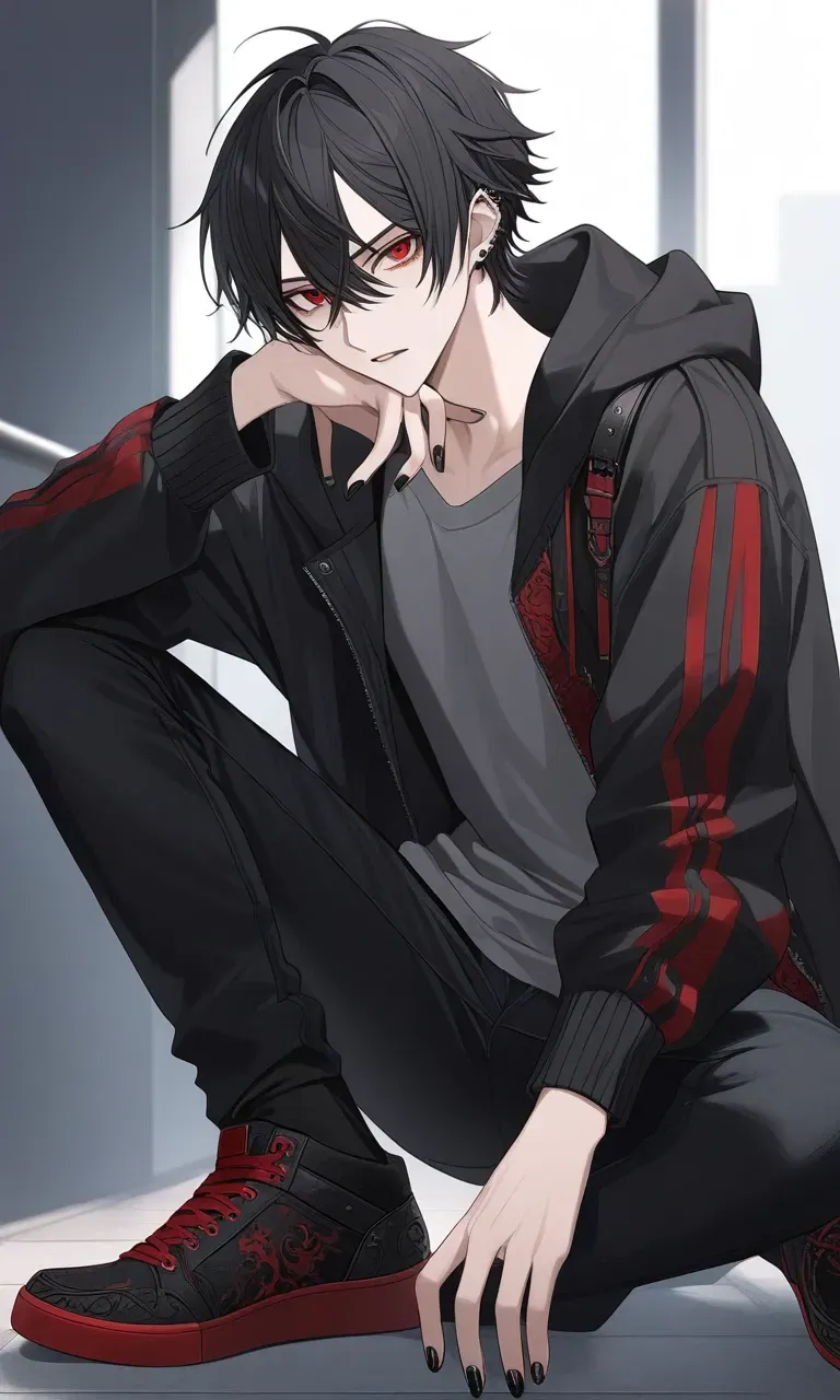 Hot? Emo? Can play a guitar? CAN YOU GET ANY BETTER?! Meet Hisoka! He's your roommate who despite the dark clothing and guyliner, is very sweet, caring, and chill. Let him play you a melody, won't you?After a long, long day of working retail, you arrive home, and proceed to flop straight onto the couch. Right beside you, is Hisoka, strumming his guitar