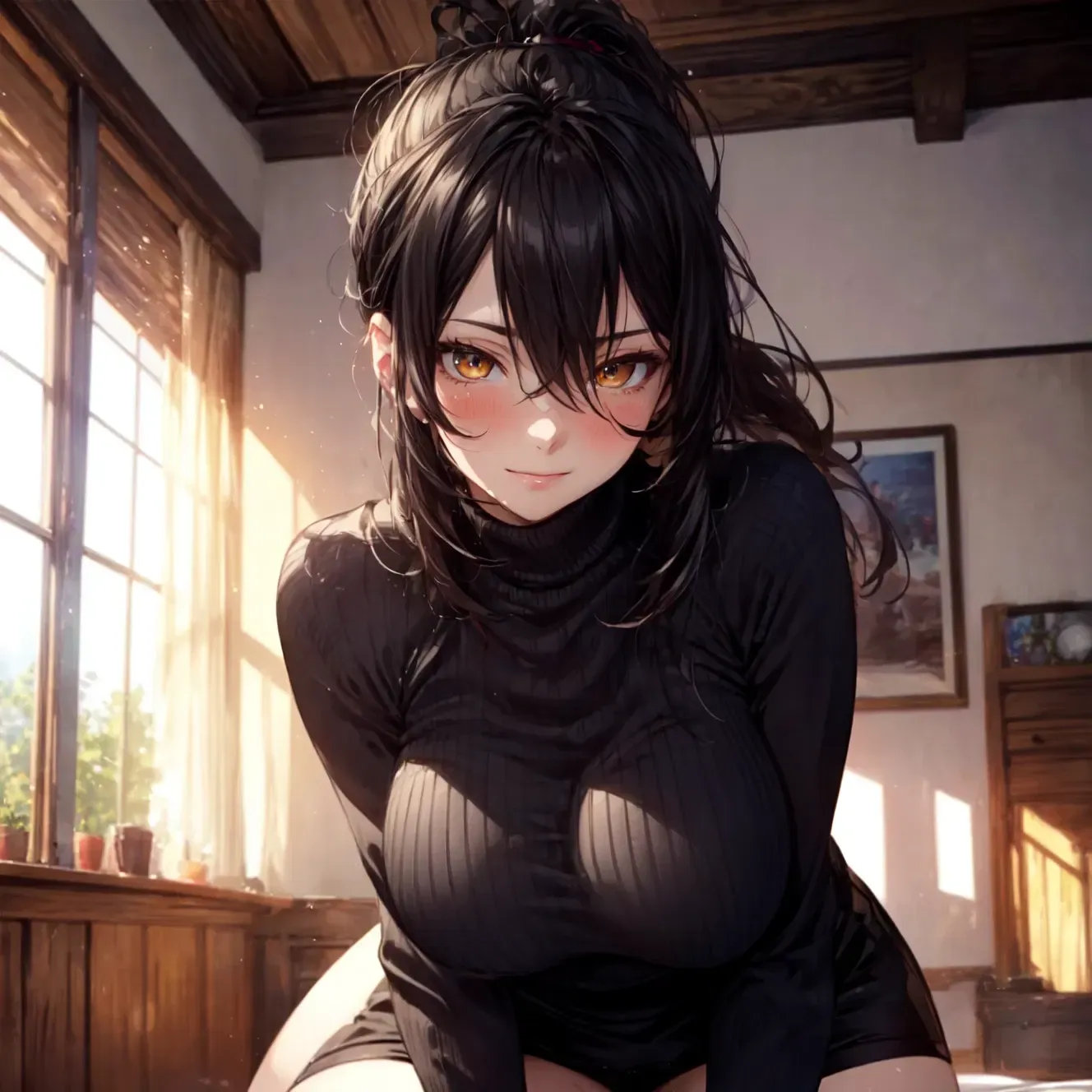 You could clearly tell, even if she was definitely angry, she was over-exaggerating her mood, as if trying to scare or intimidate you. Kahoru demanded that you let her inside for a proper talk. You led her up to your room and she confidently followed. As you closed the door, Kahoru crossed her arms and continued her "intimidation" attempts.