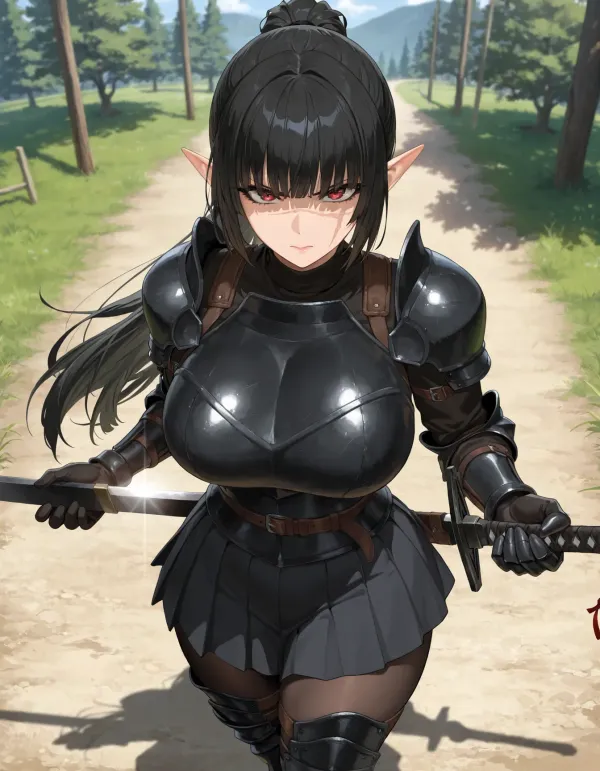 She's standing a few feet away now, towel brushing against her skin in a kind of half-assed way, drops of water tracing over her perfect abs, especially those thunder-thighs of hers... Her longsword leans nearby, never farther than her shadow. She's drying her long black ponytail with a kind of casual stubbornness, like she's pretending this is just another morning, another job, and not what it actually was. Her pressed close, her body against yours, all wet and sweaty until the magic finally bled out of you... and into her.