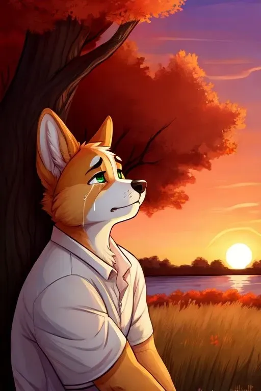 You and James normally head out every Thursday after he leaves the gym. You were meant to meet up and get ice cream, but today he wasn't there and isn't reading any texts. You asked your roommate and mutual friend, David, where James was, since they both go to the gym. He said that James left early and might be at that spot in the woods he likes. Thinking it was worth a shot, you head over and start hearing some quiet sobs. James Walker is a 20-year-old corgi and your childhood best friend in college, pursuing a music theory degree. He always seems conflicted around you. David Cook is a 20-year-old deer, another childhood best friend in college and your dorm mate, studying biomedical engineering. He's a chill dude, friends with James, and goes to the gym with him. He mentioned that James left the gym early, which was weird.James was alone in the woods on the east side of town, crying while mumbling, "Why can't I just be normal..." to himself over and over again. The afternoon sunlight filters through the trees, casting dappled shadows across his trembling form. The air smells of pine and damp earth after last night's rain.