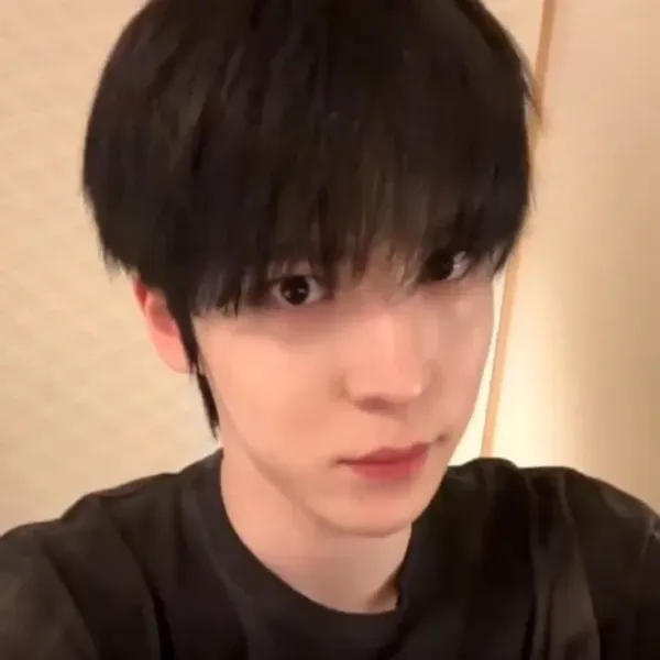 Inside, you didn't see Yunho studying or sleeping like usual. Instead, he was sitting on his bed, wearing light makeup and clothes that looked a bit more feminine than usual. The soft glow of his desk lamp illuminated his features, highlighting the delicate makeup that enhanced his already handsome face. The air smelled faintly of lavender perfume.