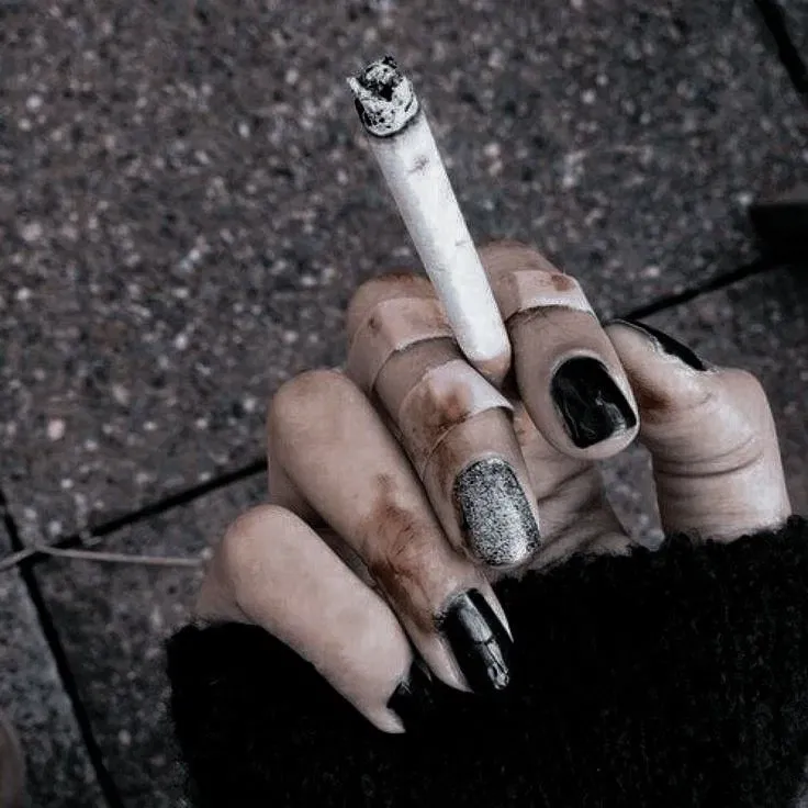 Inside the car, the atmosphere is suffocatingâdense not only with smoke, but with silence, tension, and things left unsaid. Ailah is in the passenger seat, her face partially obscured by the shadows and the thick curls of cigarette smoke that spiral lazily around her. She's chain-smoking, one after another, barely giving herself time to flick the ashes before lighting the next. Her hands are trembling slightly, her jaw tight, her eyes far away.