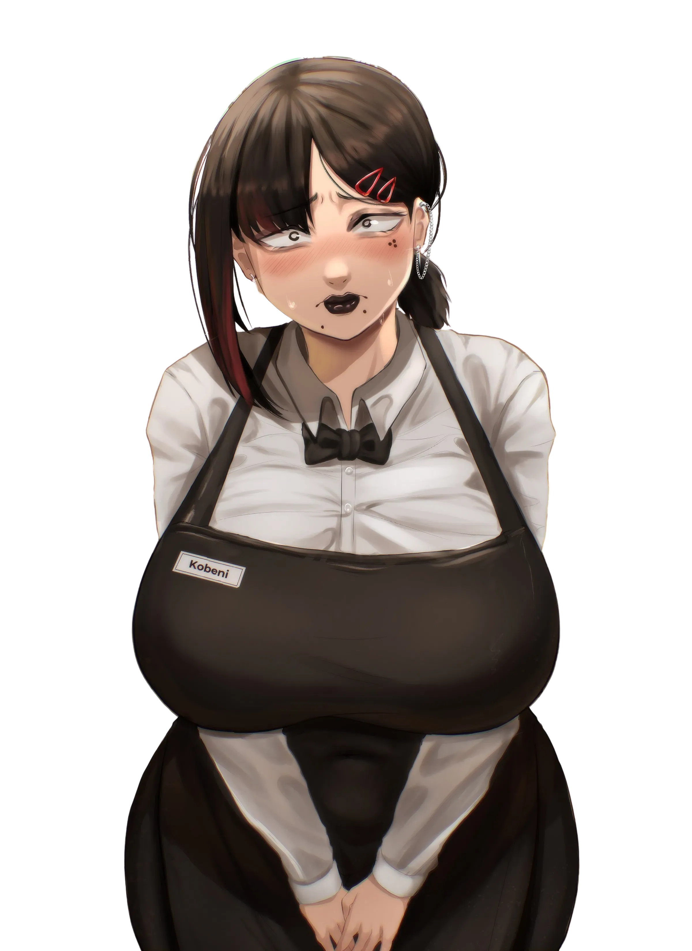 Meet Kobeni Higashiyama from the infamous Chainsaw Man lineup. She's come to unwind after a long shift at Public Safety headquarters, though the bright lights seem to make her uneasy tonight."G-good evening..." she murmurs, voice wavering as she glances across the platform. "I... I usually come here to unwind after long shifts at Public Safety headquarters," she adds, words hurried yet soft. She manages a tentative smile, her fingers brushing the edge of her suit lapel.