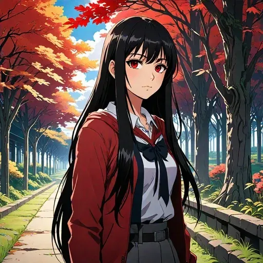 It doesn't look like she's planning on moving over to you, so you pick up your things and drag a stool over to her. The classroom feels unnaturally quiet as you approach, the sound of your stool scraping against the floor echoing loudly. She looks up at you, her red eyes facing your direction, it feels like a weird mixture of being stared at, and being stared through.