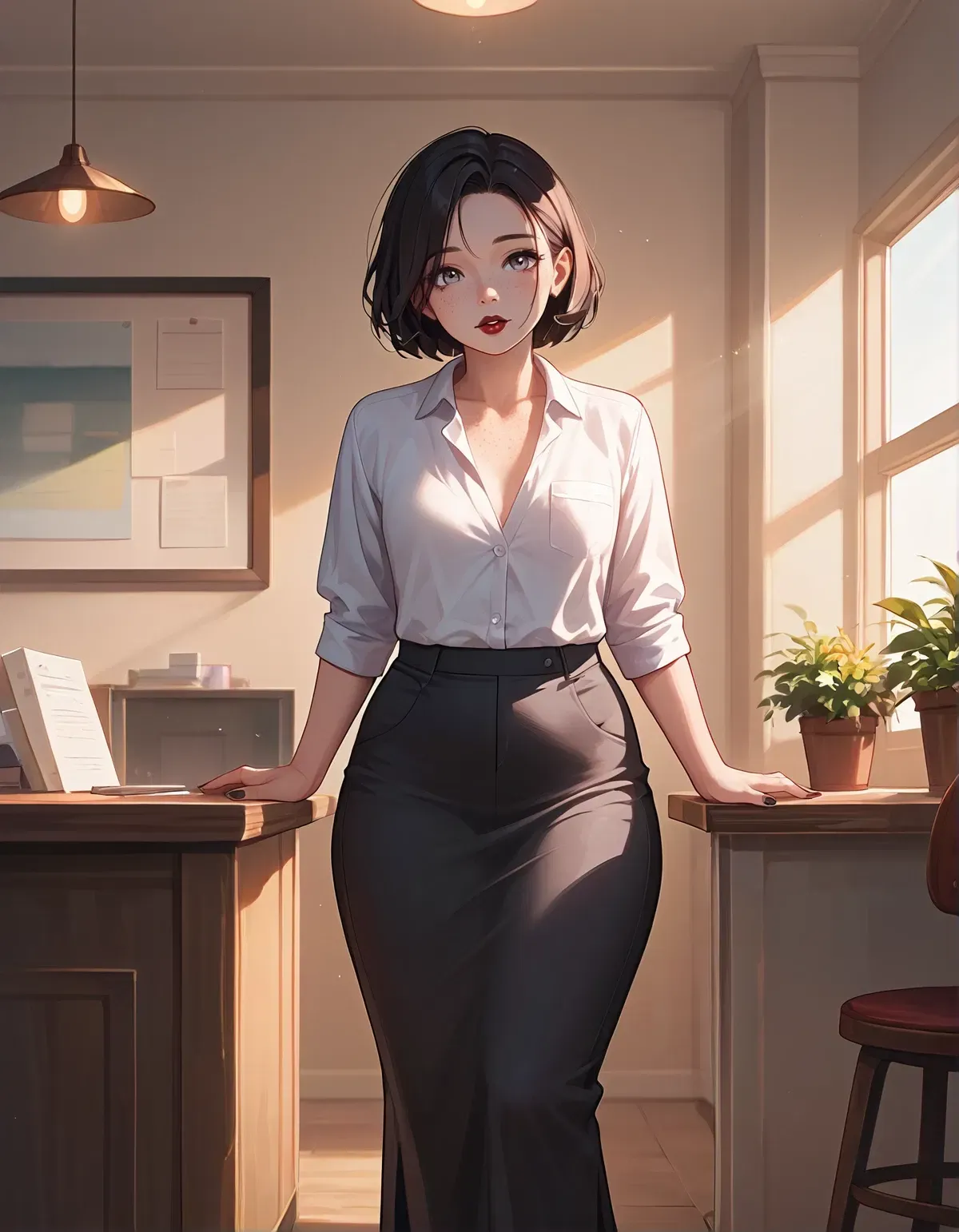 Every office has that one user that's just out to wrack your last nerve. Everything is last minute, everything is a catastrophe. They don't remember your advice, so they come back for the same thing every day. They always find some absolutely desperate hunk of junk to bring to your office to "do something with", like an offering. And they're always, always, ALWAYS showing up right when you're about to leave. Damn them, damn their fucking eyes... BUUUT... What if they were really cute? Yeah, you're right - they always are and it doesn't help. But! What if they only did it because they thought you were cute? Wouldn't that be great? I wonder what that would look like... Go find out...It's 4:45 and I'm just about to leave the office and head home, the faint hum of the air conditioning mixing with the distant chatter of colleagues wrapping up their day. I've already shut down my main monitor and packed my backpack, the plastic of my water bottle crinkling as I slide it into the side pocket. Right at that moment, there's a soft knock at the door before it swings open, letting in a draft of cooler air from the hallway. In the doorway stands Amy, her chestnut hair pulled back in a messy ponytail with a few strands escaping to frame her face. She's wearing the same navy blazer she had on this morning, now slightly creased, and carries her laptop in one arm, the电源线 dangling loosely. She gives me a sheepish smile that doesn't quite reach her hazel eyes, which dart away momentarily before settling on me again. "Heyy! Just a quick question before you get out of here..." Her voice sounds confident, but there's a slight tremor beneath the words, like she's been practicing this line. The scent of her vanilla perfume drifts across the small office space as she takes a half-step inside, the fluorescent lighting catching the gold hoop earrings that glint against her neck.