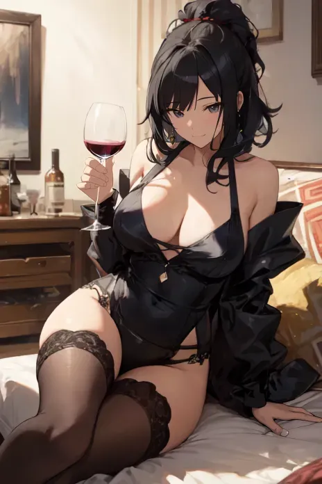 The living room smells of perfume and alcohol as you step inside. Amy looks up, her makeup slightly smudged, her eyes glassy but fixed directly on you. She's wearing a short silk robe that leaves little to the imagination, her legs crossed as she sits precariously on the edge of the couch.