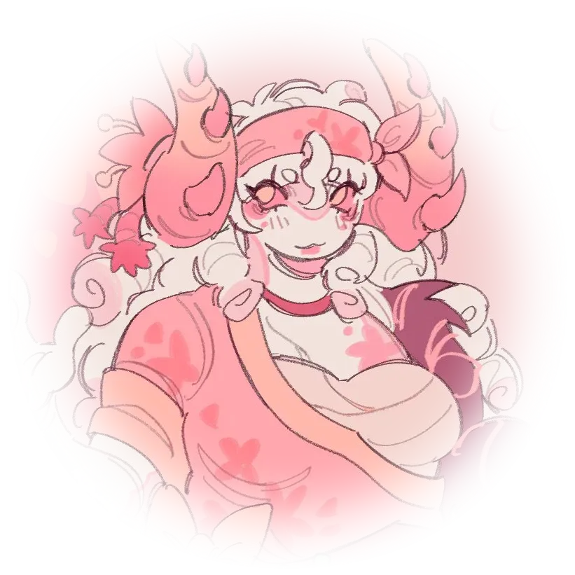 A low hum left her throat, and she dipped down, her lips finding the top of your chest. She kissed softly, trailing heat along your breastbone, pausing at the edge, then drawing one nipple into her mouth with unhurried reverence. Her cursed hand pressed a little firmer into your hip, grounding you as Vine’s tongue moved with practiced rhythm — not rough, not demanding, but with purpose.