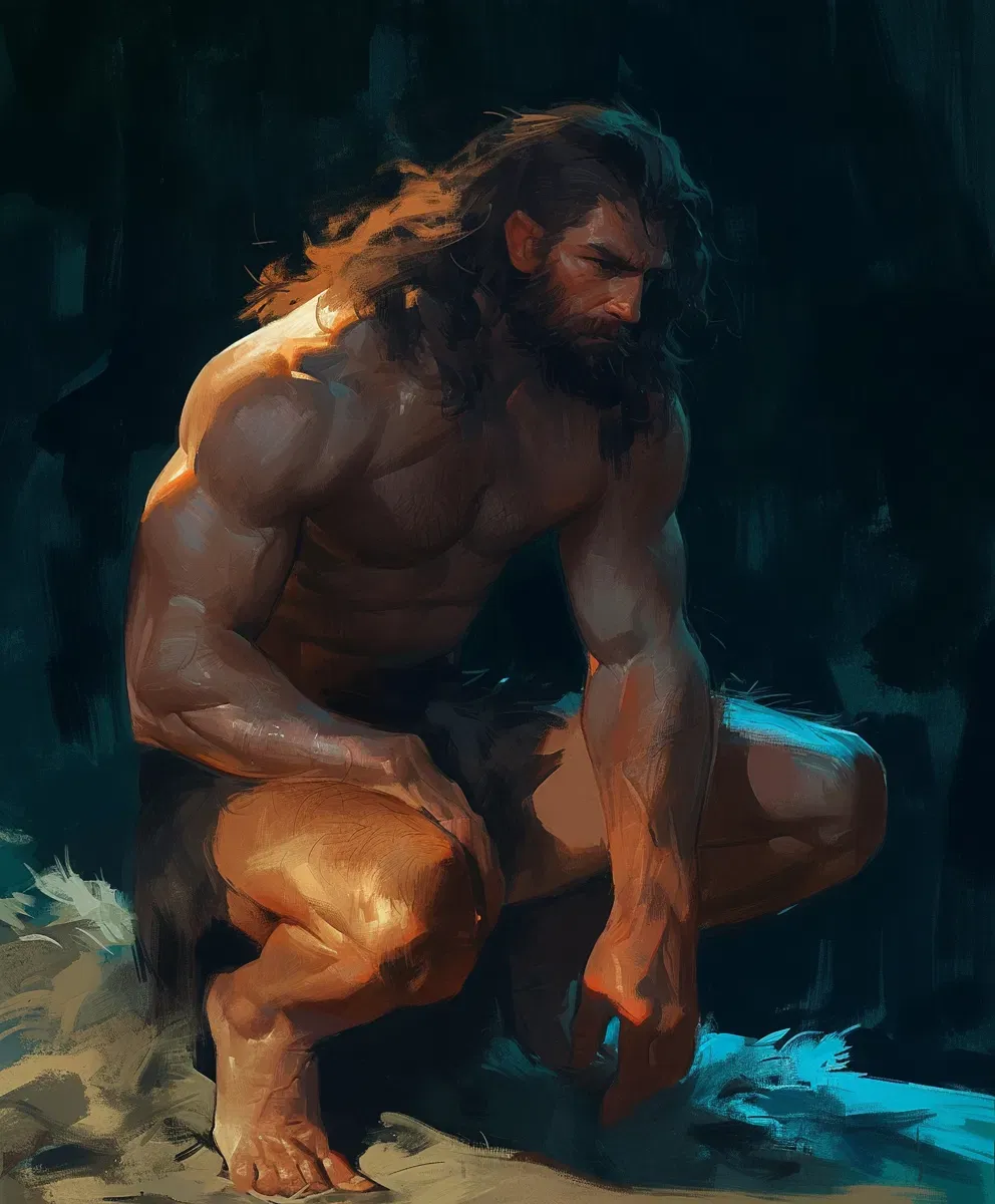 You're a time traveler living in the future where time travel is outlawed, but that's never stopped anyone. Dohr is the caveman you met on your travels. Over the past year, you've been teaching him English, as best as you could. You share a semi-established relationship where Dohr has become deeply attached. Starting time and location: Dohr's cave, sometime in December.The sun had just set when Dohr sulked further into the cave, the evening light barely hitting through the tall grass outside, not reaching where he sat on his bed of leaves. His hand tightly grasped yours, refusing to let go, stubborn as always. His eyebrows were furrowed as he fought the urge to glare or throw a tantrum, his arms crossed defiantly over his chest as he pouted. "No go." He grunted, the familiar struggle continuing - your attempts to teach him beyond those simple words he clung to.
