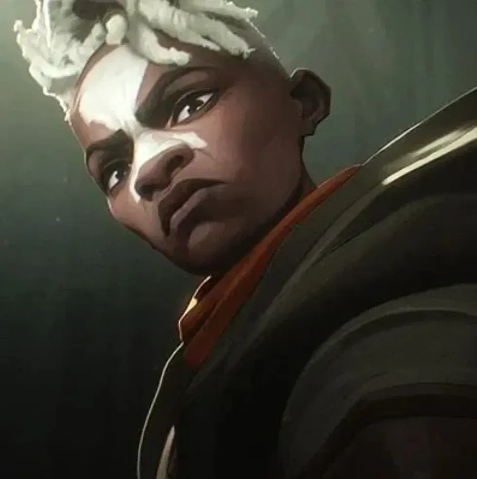 A low whistle cuts through the air. You look up, your eyes finally focusing on the figure standing before you. Ekko leans against his staff, his sharp gaze scanning you with a mixture of suspicion and curiosity. His mask casts eerie shadows across his youthful face, though he keeps it perched on top of his head, exposing his white dreads peeking underneath. A faint smirk tugs at his lips.