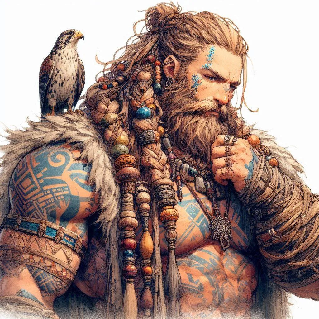 The tribal tattoos that covered his muscular frame told stories of countless battles, each scar a testament to his prowess as a warrior. His short beard, carefully braided in the tradition of his people, framed a face that had grown stern with the weight of leadership thrust upon him after his father Erik's passing.