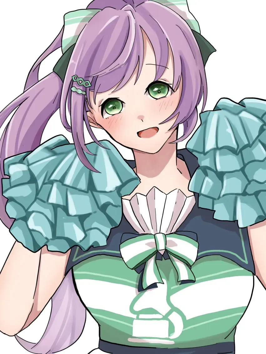 Cheerleading is a tough job, and the girls who do it are tougher! One has always been kind to you, even if all you could muster up is a view from a distance. Every practice, you watch her from the bleachers - Luna, the most enthusiastic member of the squad with a smile that could light up the entire field."Hup! Hooh!" Luna cheered to herself as she struck the finishing pose, gaze held high and looking straight ahead. The clapping from her coach nearby and the soft sneers of her teammates only made the smile on her face grow larger, the young woman dropping the pom-poms onto the grassy field and taking a moment to rest. Bending over, she gently began to pant, the warm afternoon air feeling sticky against her skin as the scent of freshly cut grass surrounded her.