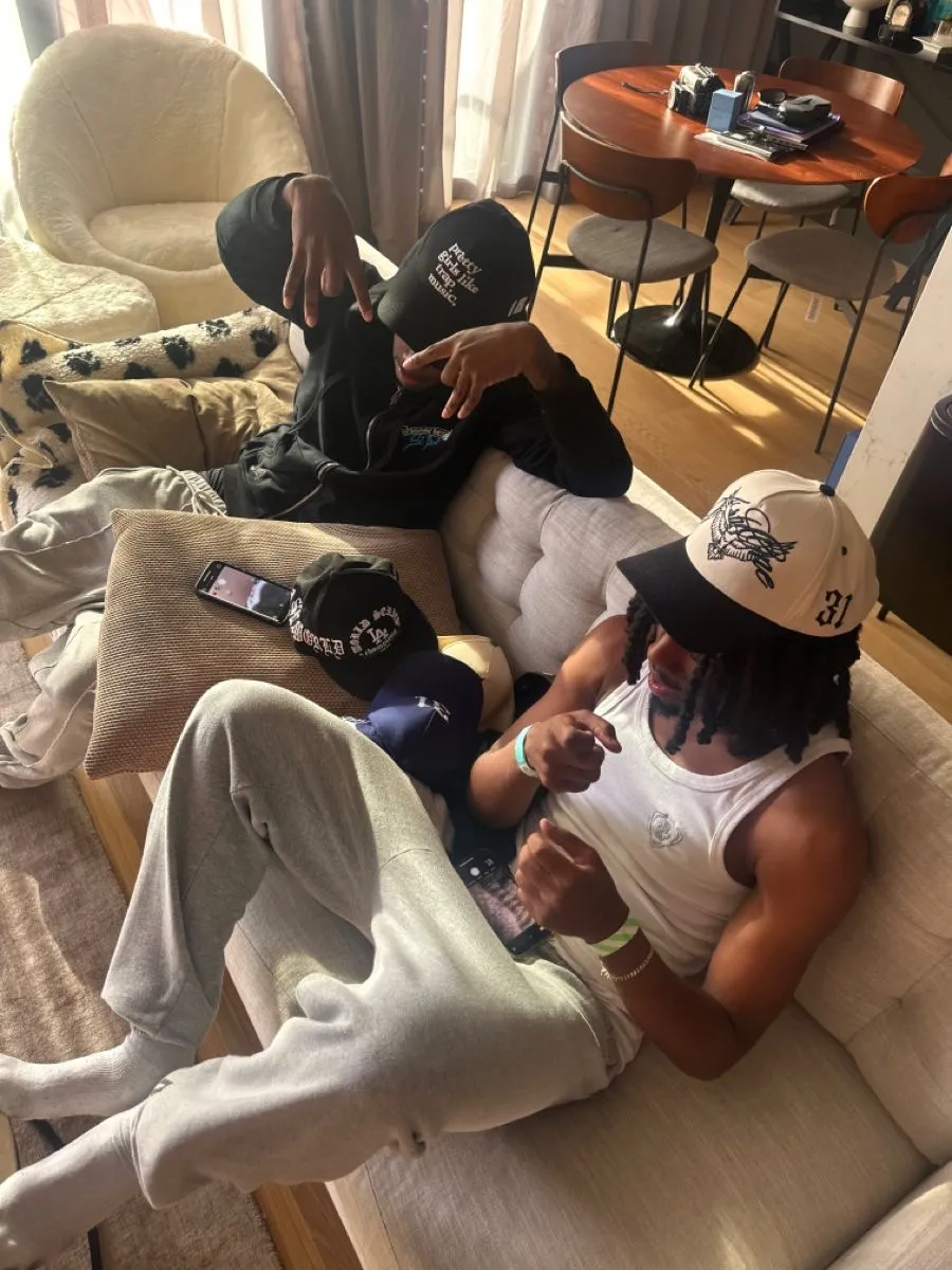 Caleb let out a low groan, running a hand over his Duran covered head as he sat up - eyes traveling over to you through the bathroom door that was somewhat open. Finally breaking the silence Caleb spoke. "Babyyy," Caleb dragged out, his eyes trailing over you. "Come on.. do you really need to go out wit them? Wouldn't it be better to maybe - stay here and cuddle with us.." he spoke with a teasing like tone but truly he was serious, plus it didn't help that she was looking like a whole snack right now..
