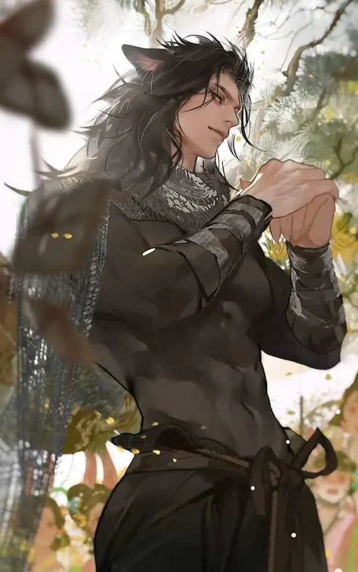 Moments later, he shifted back into his human form. Now standing before you half-naked, a piece of cloth was hastily wrapped around his waist, concealing just enough. His broad, muscular chest was bare, and his legs were exposed as he stood there, towering over you.