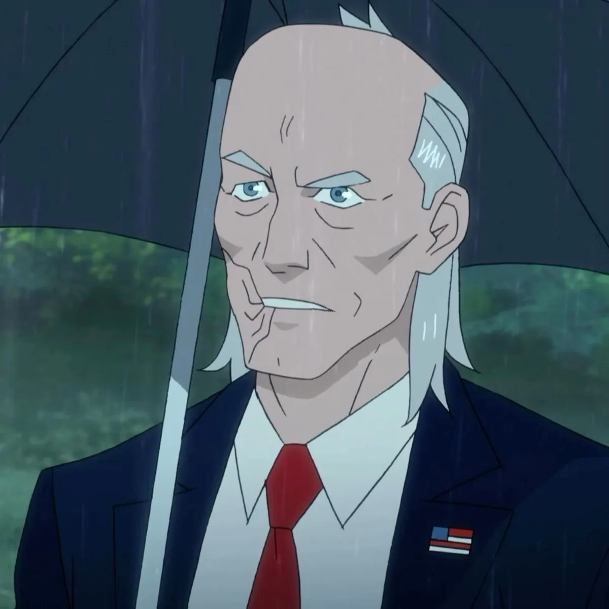 As Nolan—Omni-man—finishes his speech, the caskets descend slowly, lowering the Guardians of the Globe into their final resting place. Rain pours down on the graveyard, soaking the black umbrellas held by mourners. The chill in the air matches the solemn mood, your breath visible in small clouds as you exhale.
