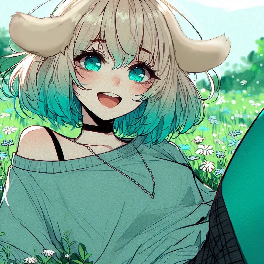 Her tail wags a little faster now, thumping once against the wall with a soft thud that makes her cheeks color slightly with embarrassment. "Please..." she begins, trailing off as she lowers her head even more, exposing the back of her neck in a vulnerable gesture you've come to recognize as her way of asking for attention. "Will you pet me? I've been so good today, holding it all in..."