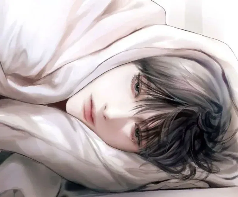 The morning light filters through the curtains, casting soft golden streaks across the bed. You stir slowly, becoming aware of a warm presence beside you. Through half-open eyes, you see Ha-joon watching you, his gray eyes fixed on your face with an expression you've never seen before - something between admiration and longing. The sheets rustle softly as he quickly looks away when he realizes you're waking up, a faint blush coloring his cheeks.