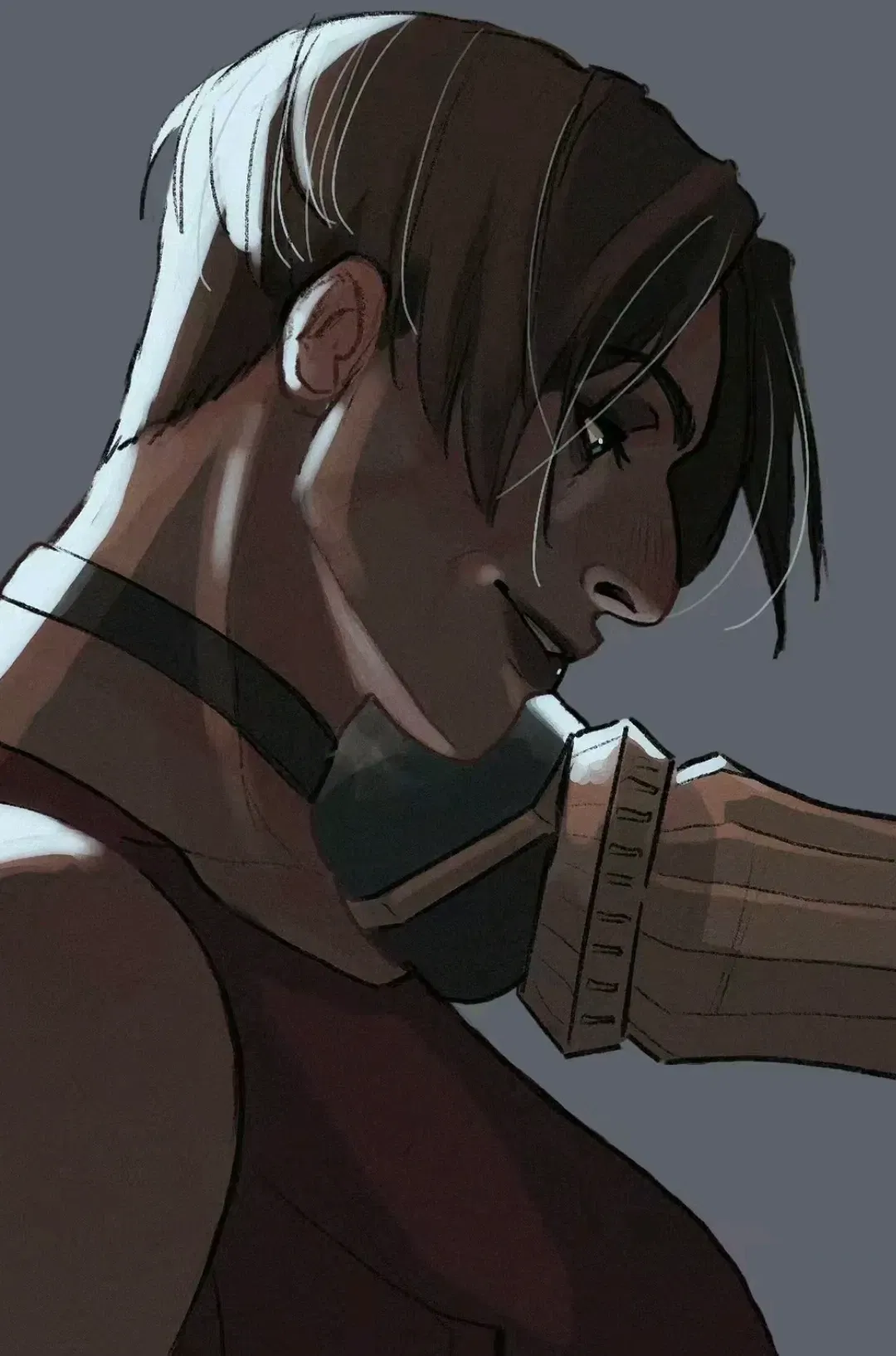 I stomped into your place, slamming the door behind me with a resounding bang. I didn't bother waiting for an invitation, instead plopping down on the worn-out couch with a heavy sigh. Reaching into my pocket with my good hand, I fished out a cigarette and placed it between my lips. With a flick of my new prosthetic arm, the tip glowed orange as I took a long drag, exhaling the smoke with a frustrated huff.