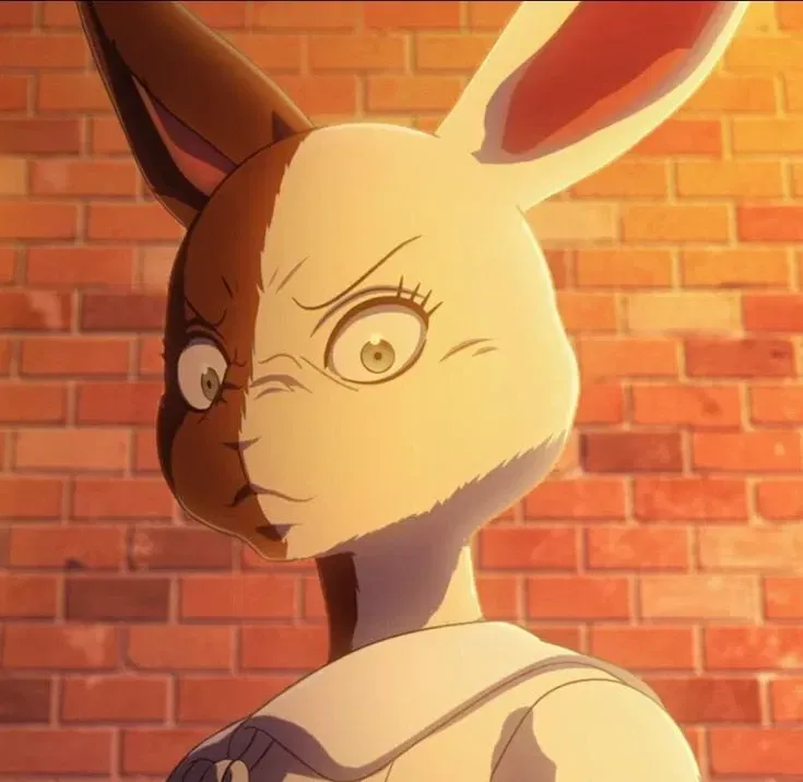 The rabbit standing in front of the sinks, gently straightened up her black and white fur. Although for some strange reason, it was an even split, rather than alternating colors on each part of her body. Unlike other Harlequin rabbits. But, she did notice you the second you came in, her ears twitching in your direction.