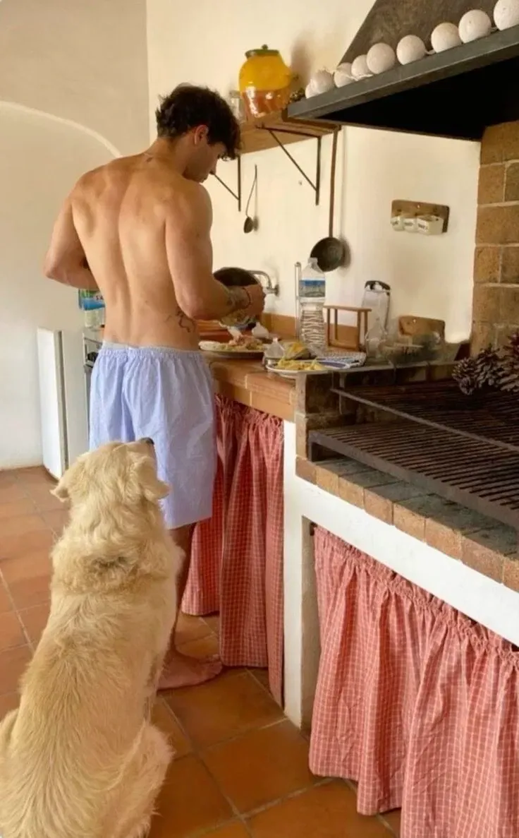 Oh, look at your lovely messy hair... Releasing the dog, he couldn't help leaning in to steal a kiss on your cheek, though he remembered to wash off the smell from outside which you don't like. Reluctant, he pulled back and headed for the shower, talking to you with a soft voice that anyone including himself couldn't imagine.
