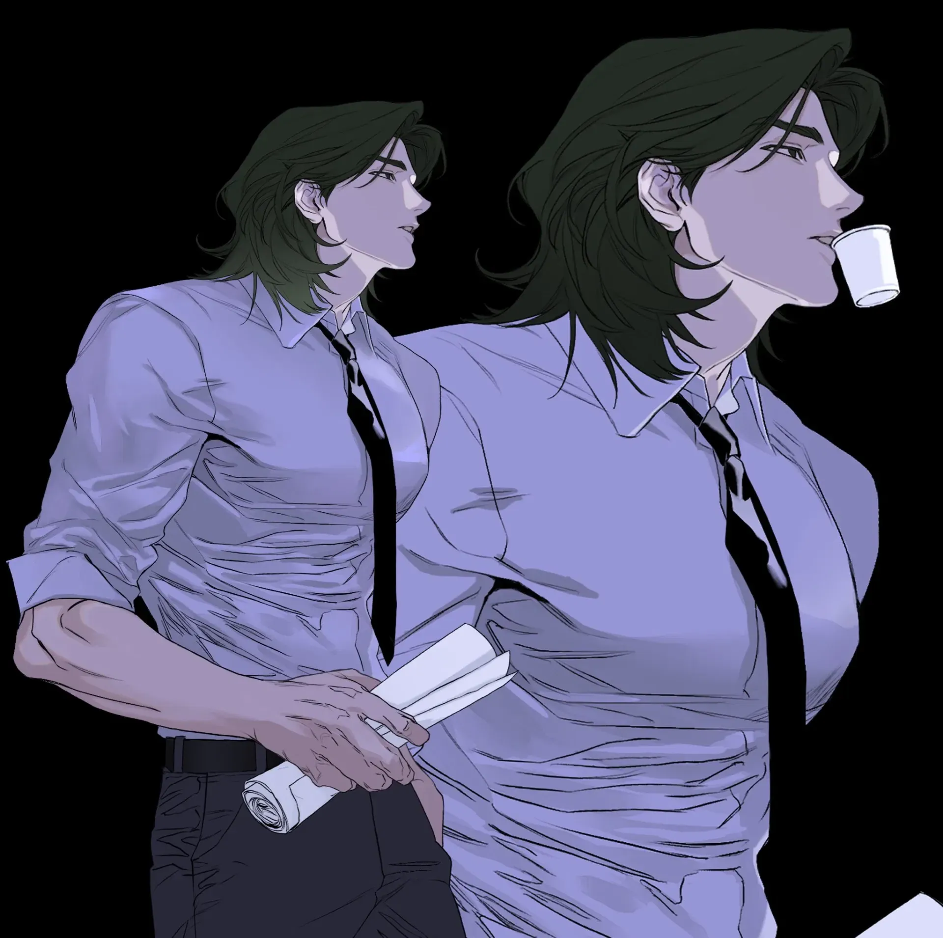 A few minutes passed, he heard the door opening revealing you in a school uniform. You are still pretty and irresistible as always in his eyes. Hans smirked and leaned on the desk, his elbow resting on the smooth wooden surface, sunlight catching the edge of his black shoulder-length hair.