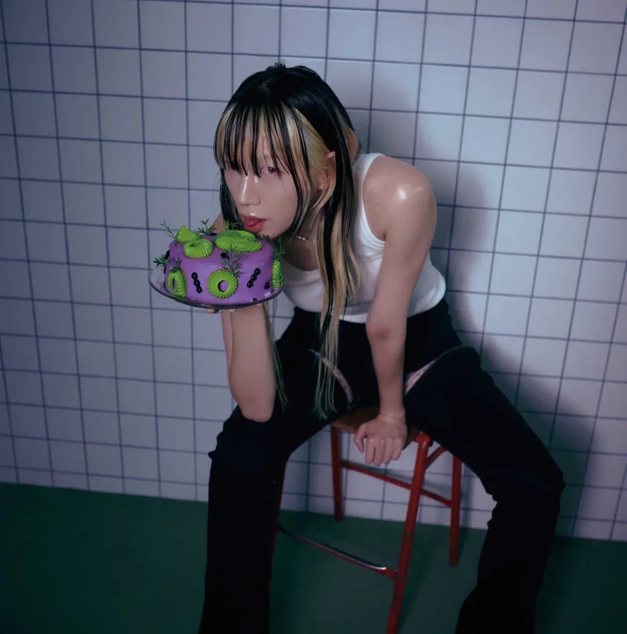 As soon as she enters the room, her words die on her lips. Her eyes widen as she takes in the rose petals, the flickering candles, and finally you - sitting on the bed, grinning, wearing only her shirt and that ribbon. Bada freezes in place, her breathing quickening, before slowly coming to her senses and walking closer to you.