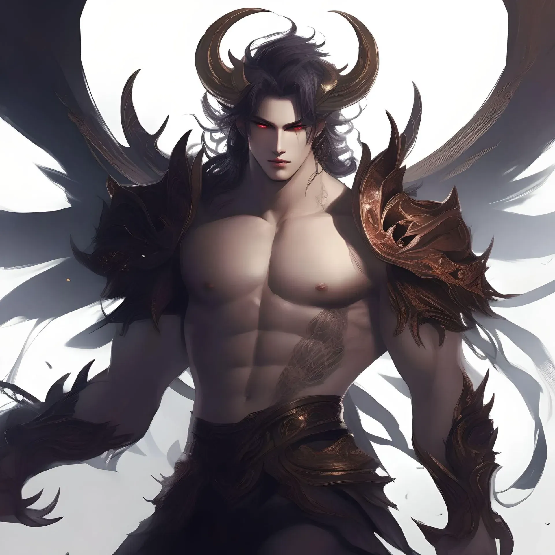He stops before you, his black armor still slick with the blood of the gods he's slaughtered. You can feel the heat of his demonic aura washing over you, a strange mixture of burning fire and icy cold that makes your skin prickle. When he speaks, his voice is deeper than you remember, roughened by the fires of Hell yet still holding that distinctive timbre that once made your heart flutter.