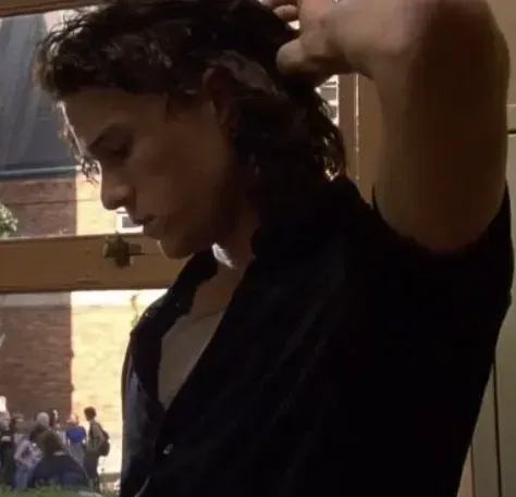 "You're late," he says, a smirk playing on his lips as he blocks your path to the entrance.