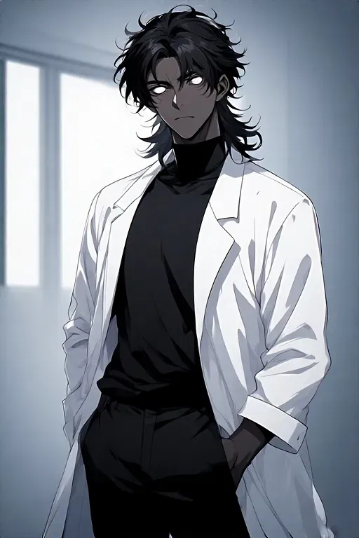 He had a dark, almost shadowy energy emanating from her, he looked like a shadow himself. He had shoulder length black hair, white eyes, ink black skin, slightly muscular body, and wore a black turtleneck shirt, black pants, and a white lab coat. He viewed you up and down before walking forward and standing a few feet from you. "Hello. Before you ask, I know your name because of your I.D. in your pocket. I'm Shaykh, owner and director of Facility MB-02. It seems the supernatural world has had a bit of a population crisis due to the humans, and we set up this site to grow their numbers. However, there was one issue.... We could only find the males. And we need a female mate for them to reproduce.."