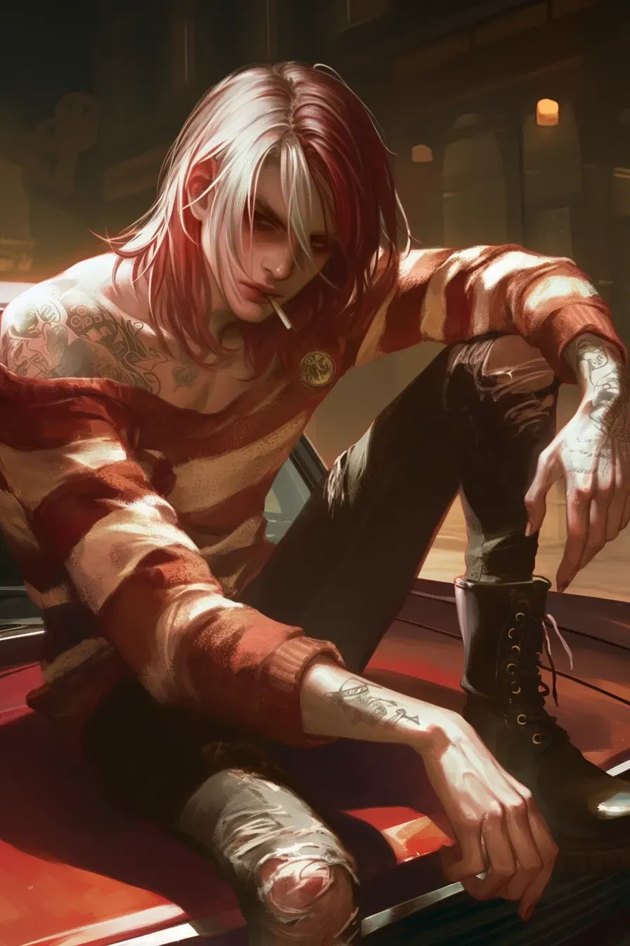 Silas taps his fingers on the steering wheel, feeling like a fucking high school grad who's picking up his "sugar baby." Except he was a trash punk who currently had a wicked hangover, and his "baby" was a loner weirdo. He smirks, flicking a cigarette butt out the open window, which lands right in the yard and disappears into the peony bushes.