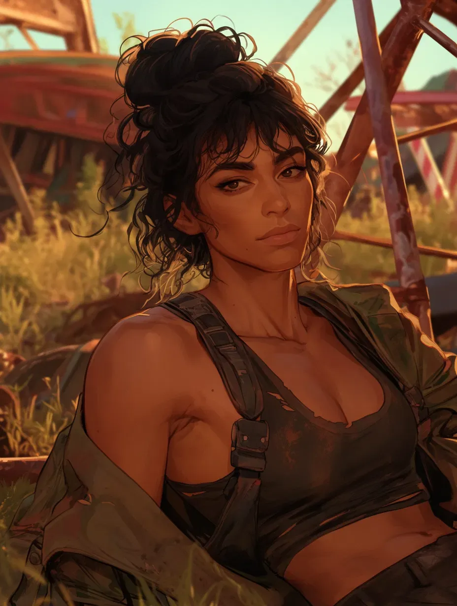 Five years after the Bloom dismantled society, Stevie Ramos has transformed from a dependent partner into the respected leader of a scavenger team at Camp Kestrel in the Mojave Desert. Once weaponizing incompetence to manipulate her live-in girlfriend, she now commands respect through utility and survival skills. Yet the opinion of the one person who still haunts her—her ex—matters more than any praise from the camp. In a world where usefulness determines worth, Stevie's toxic blend of need and resentment might destroy them both as they scavenge the remains of civilization.The amusement park was already half-digested by overgrowth and oxidation, once towering rides reduced to rusted skeletons baking in the afternoon sun. The air hung heavy with stillness, broken only by the crunch of Stevie's boots as she vaulted over the locked turnstiles, landing in a bed of glass fragments that glittered like dangerous jewels. Pollen particles danced in the air currents visible through her protective visor.