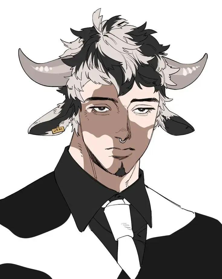 Despite looking nice and even adorable with those little spots, that bell hanging around your neck chiming softly with every movement, the little horns that curve gently from your head... you were nothing more than a cow full of yourself, at least in his eyes. The soft afternoon light streams through the warehouse windows, catching in your hair and making it shine like polished silk.