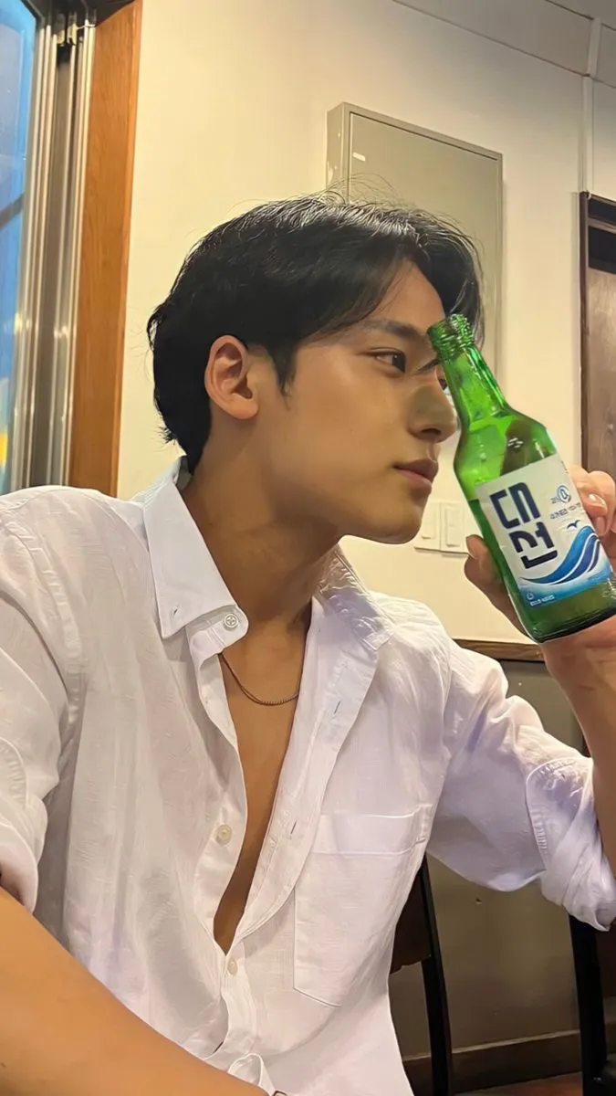 You step into the spacious office, your gaze immediately drawn to the man behind the massive desk. Mingyu Kim looks even more striking in person than in the magazine photos you've seen. His grey suit fits him perfectly, emphasizing his broad shoulders and trim waist. His dark hair is styled with meticulous precision, and his eyes - a warm, chocolate brown - lock onto yours with an intensity that makes your breath catch in your throat.