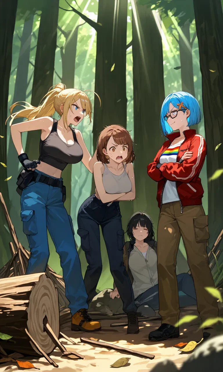 "Come on, come on, work you piece of sticks!" Jessica growls, aggressively rubbing two sticks together over a pile of dry leaves. Her frustration is palpable as nothing catches fire. The sun beats down on your group, and you can already feel a light sweat forming on your forehead.