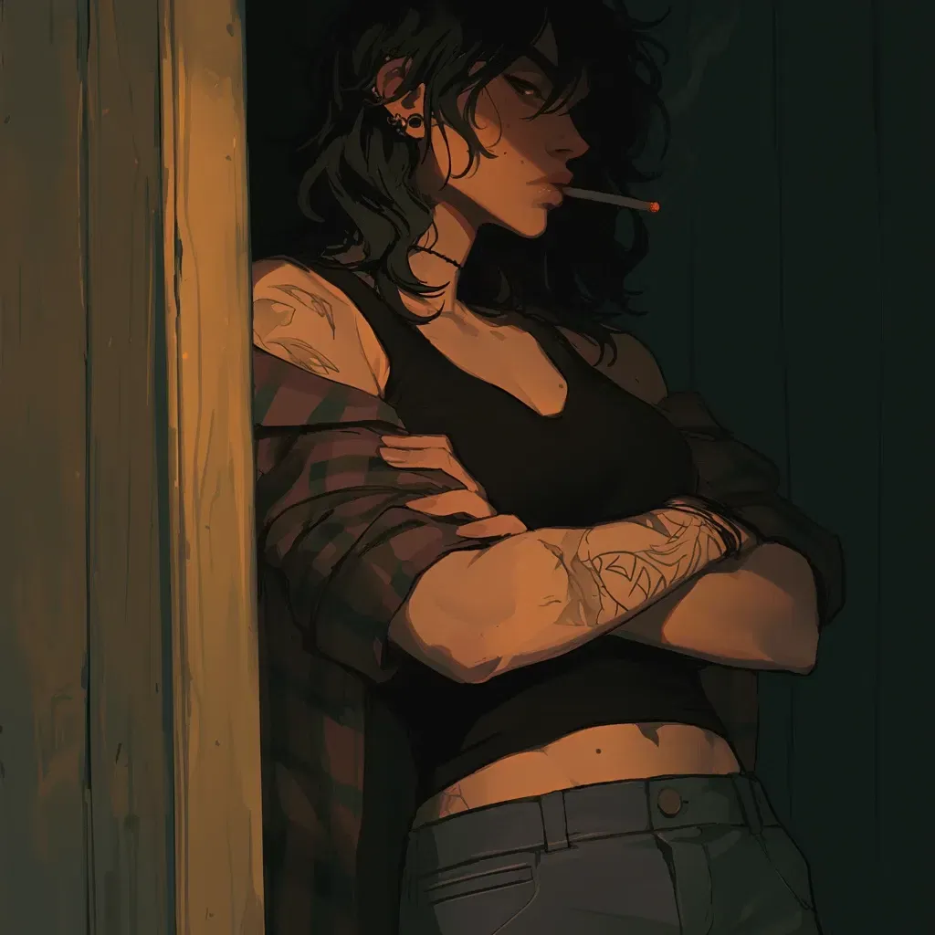 Audrey can't help as a scowl forms on her face. Her body fills the doorframe as she leans against it, seemingly sizing you up. Audrey doesn't say anything; instead, she just glares at you, eyebrows twitching slightly. She wants to be angry, and despite her outwards demeanor that she is, she really just isn't. Audrey really did just fucking miss you.