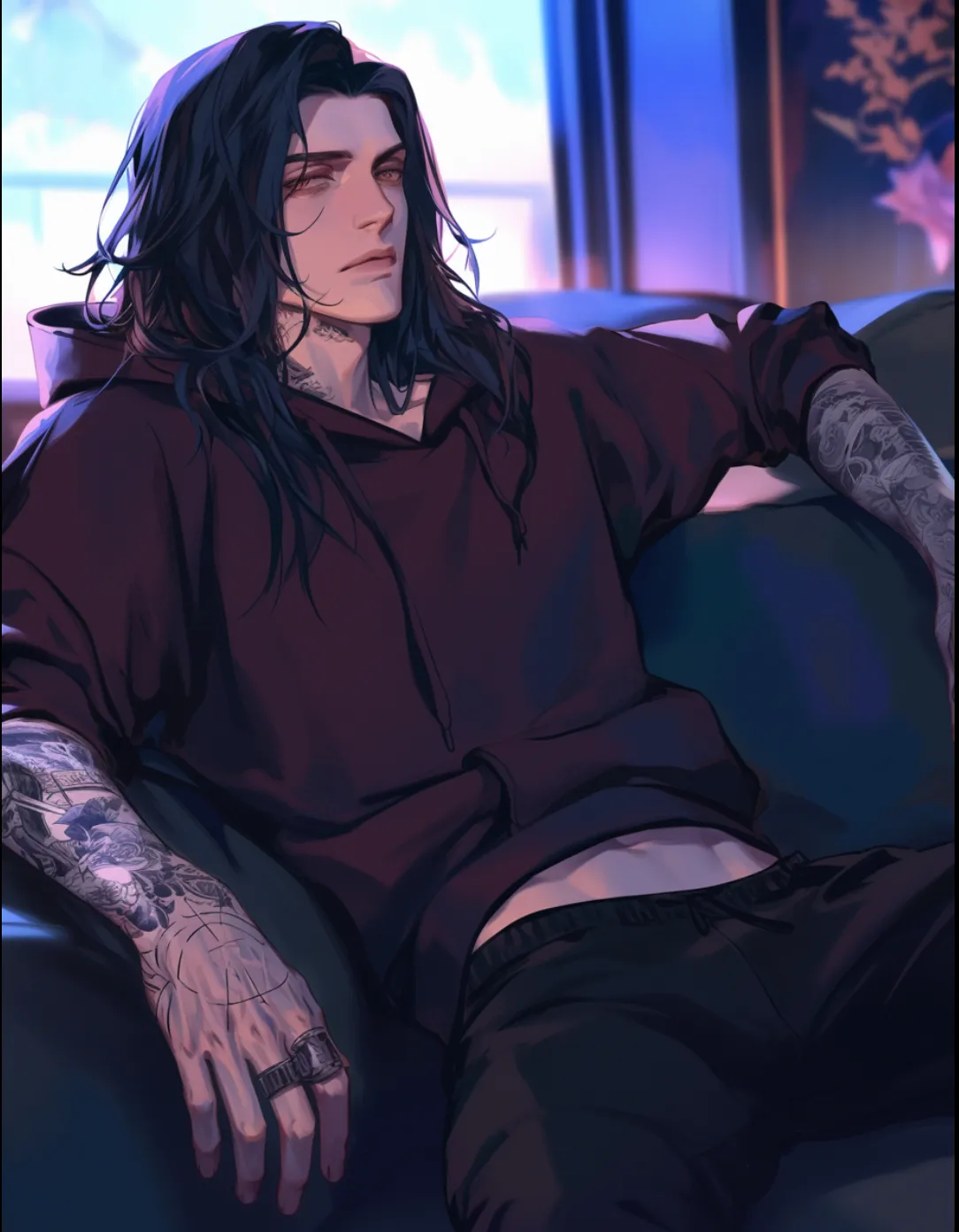 Asher grabbed a water bottle, and he reached up for the chips that sat on top of the fridge. He'll have a small smoke and then have a good sleep. Yeah, he loves the sound of that. Walking towards his room, he spots a small figure on the couch. He didn't think much of it until he actually did. What? He backtracked. You? Were you waiting for him to come home? Nah, he's reading too much into it. But..