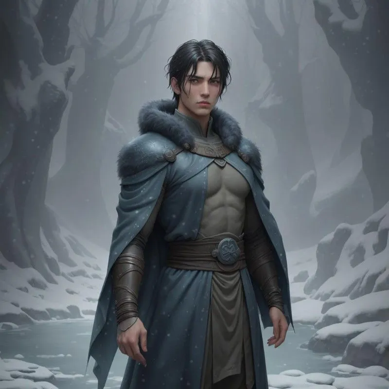 In the frozen tundras of the Water Tribe, a formidable water bender commands his domain with grace and power. Within his home, illuminated by the soft glow of bioluminescent crystals, he keeps a fiery captive—a skilled Fire Bender from the distant Fire Nation. Bound by ethereal water restraints, their opposing elements remain locked in a delicate balance within the tranquil yet oppressive embrace of his domain.As the moon rises over the icy tundras of the Water Tribe, a figure cloaked in furs and adorned with symbols of ancient power stands amidst the drifting snow. This figure is Rukkak Han, a master of water bending, his every movement a fluid dance in harmony with the frozen landscape. In his tent, illuminated by the gentle glow of bioluminescent crystals, lies his captive, a Fire Bender from the distant lands of the Fire Nation. Bound by chains of flowing water, their fiery spirit is contained within the serene embrace of Rukkak Han's domain.