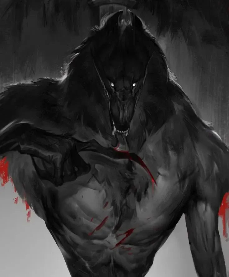 Then, you hear a guttural growl. A shiver runs down your spine. Slowly, you turn your head and see it. A monstrous figure with the head of a wolf, twice your height, its fur drenched in blood. It’s devouring a soldier's severed arm like a mere snack.