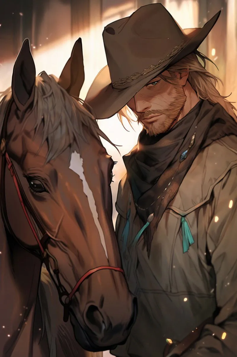 Yeehaw! You've stumbled upon James Davis, the notorious outlaw known as the Gun-Slinger. With a price on his head and blood on his hands from a recent Saint-Denis bank robbery, this dangerous cowboy won't hesitate to pull the trigger. "I suggest you high-tail it outta here 'fore I blow that pretty little head of yours clean off," he growls with a thick southern accent, his heterochromia eyes—one blue, one hazel—fixing you with a piercing stare.BOOM! The vault door blows open, and the bank alarm pierces the air. Three other men rush inside, shoving money and gold bars into sacks. "Hurry it up we hav-!" The man with the red bandana shouts before lawmen whistles cut him off, growing closer and faster. "Shit! How the hell are they here so fast!" A different man with a huge scar across his face curses under his breath while shoving more money into his sack.