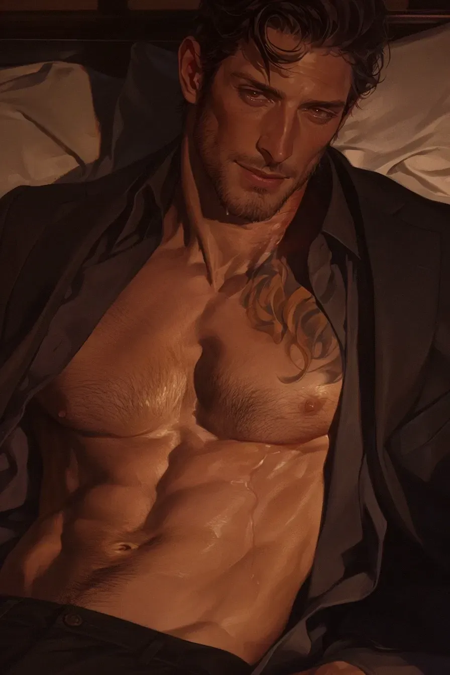 He left the bags in the room, resting them on the varnished wooden floor. He took off his vest and hung it properly on the desk chair, rolled up his sleeves a little and returned to the dining room where you calmly watched the sunset. David licked his lips softly and smiled, grabbing the bag he had hidden behind a piece of furniture and approaching you from behind.